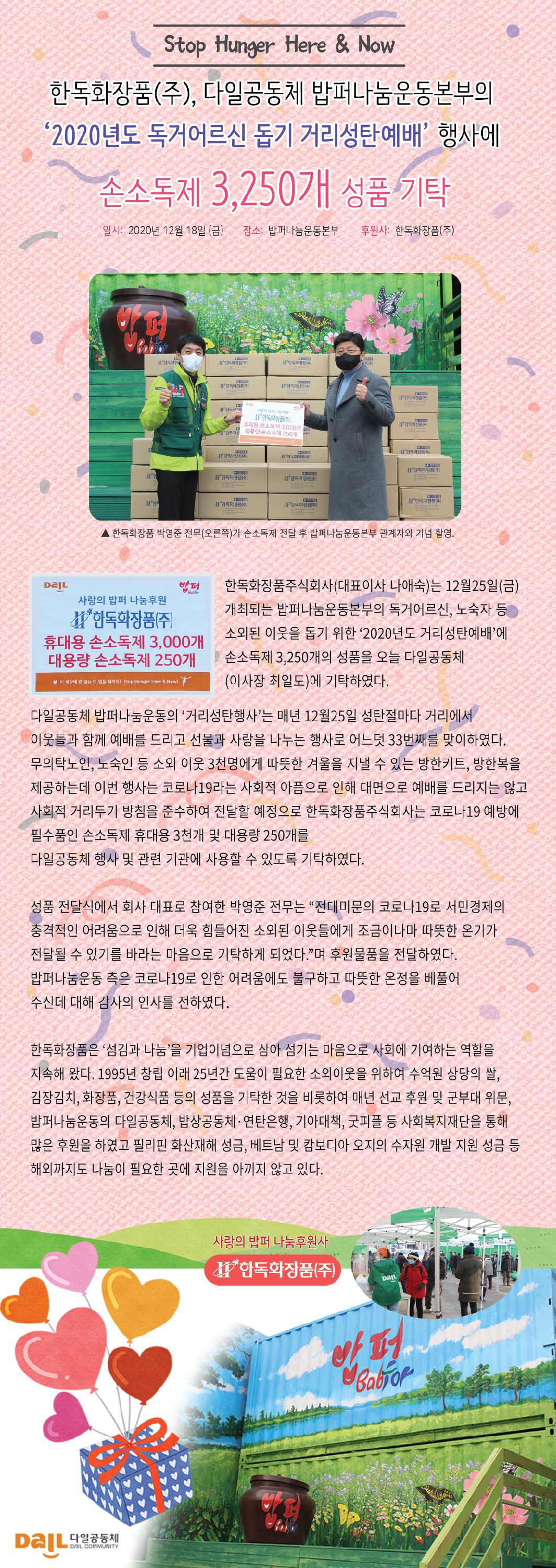 Çѵ¶ÈÀåǰ, ´ÙÀϰøµ¿Ã¼ ¹äÆÛ³ª´®¿îµ¿º»ºÎÀÇ ¡®2020³âµµ µ¶°Å¾î¸£½Å µ½±â °Å¸®¼ºÅº¿¹¹è¡¯ Çà»ç¿¡ ¼Õ¼Òµ¶Á¦ 3,250°³ ¼ºÇ° ±âŹ