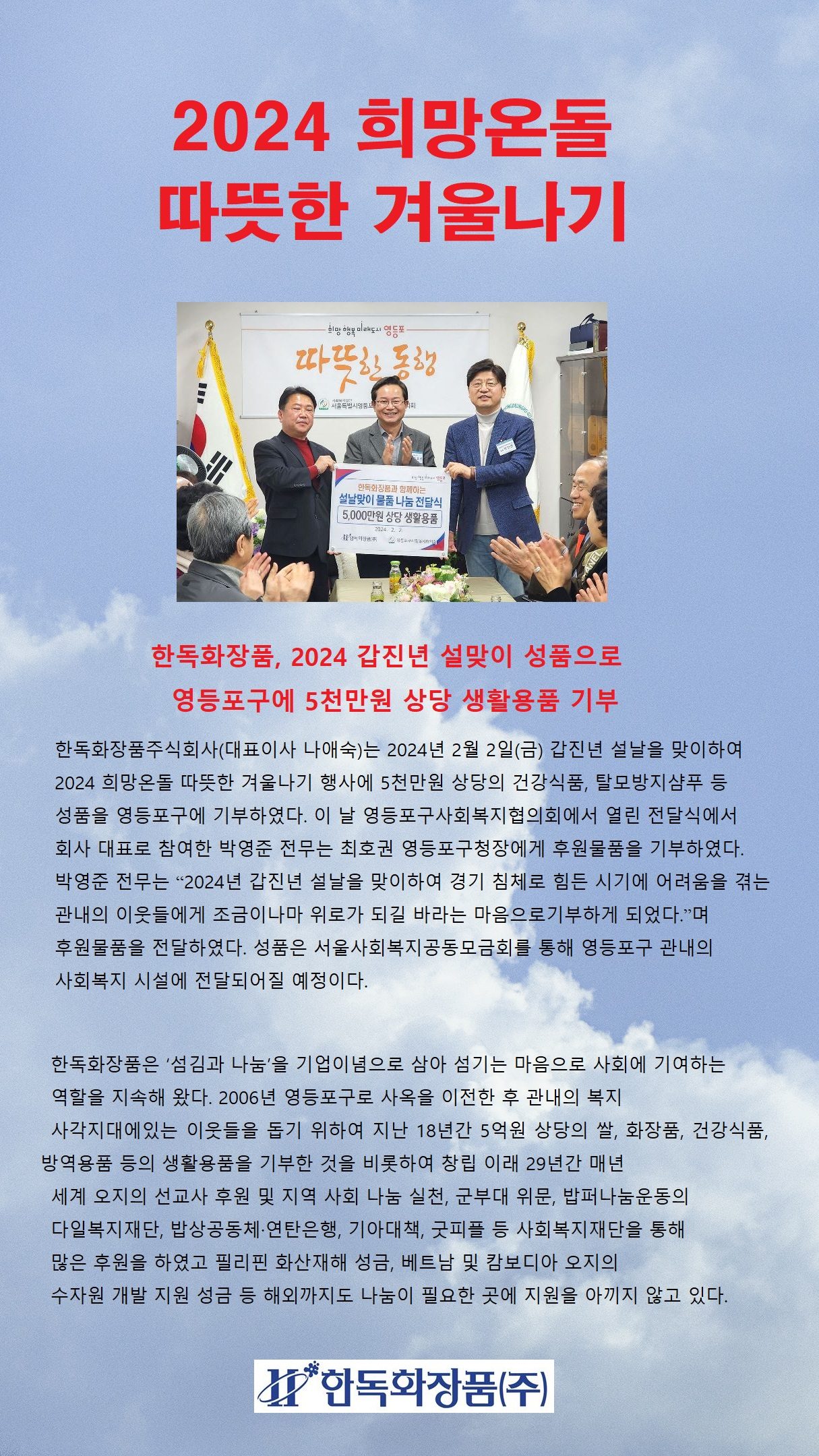Çѵ¶ÈÀåǰ ¿µµîÆ÷±¸ 2024 Èñ¸Á¿Âµ¹ µû¶æÇÑ °Ü¿ï³ª±â 5,000¸¸¿ø »ó´ç »ýȰ¿ëǰ ±âºÎ